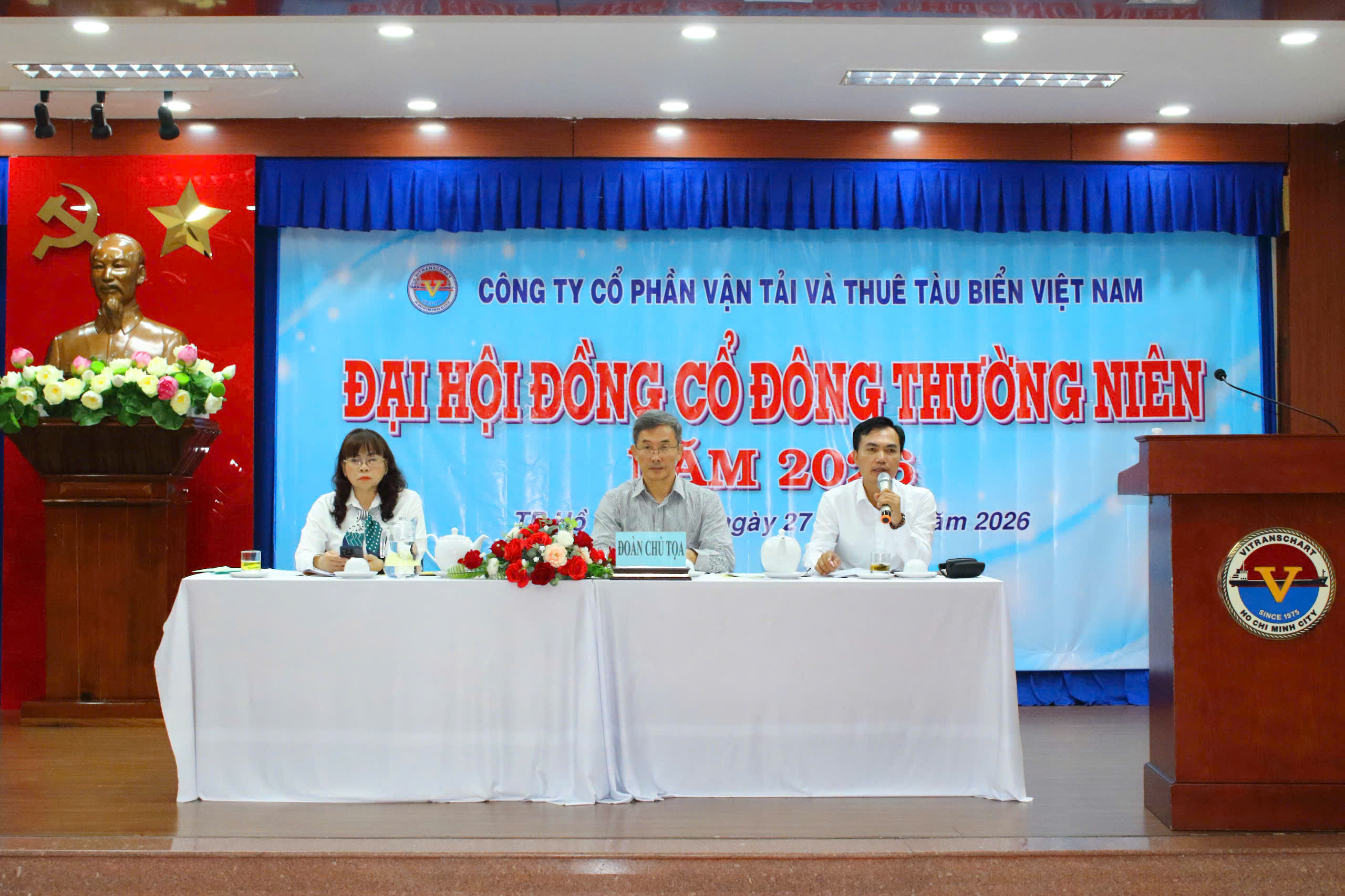 Ngày 27/03/2026, Công ty Cổ phần Vận tải và Thuê tàu biển Việt Nam (Vitranschart JSC) đã tổ chức thành công Đại hội đồng cổ đông thường niên năm 2026. Đại hội diễn ra trong không khí trang trọng, nghiêm túc và trách nhiệm, quy tụ sự tham dự đông đủ của Hội đồng quản trị, Ban Kiểm soát và Ban Tổng Giám đốc cùng các quý cổ đông và đại biểu người lao động.